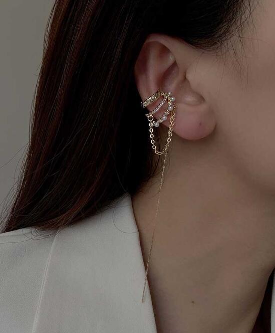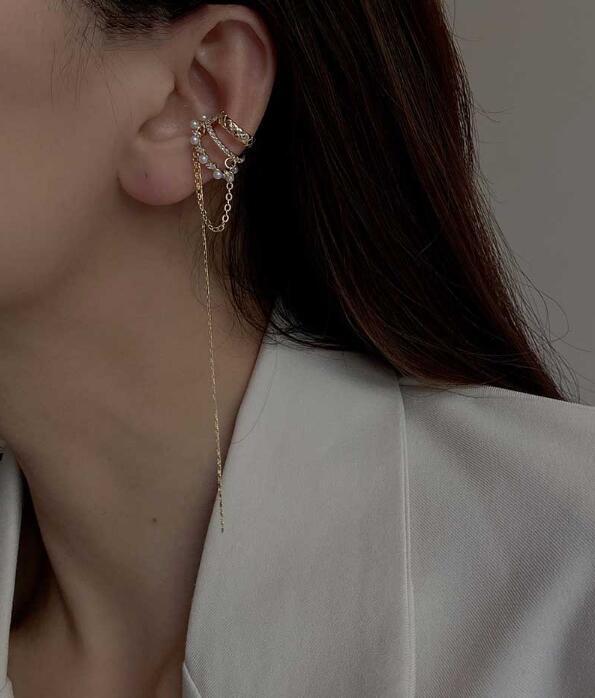 デザインチックな揺れるイヤーカフ。